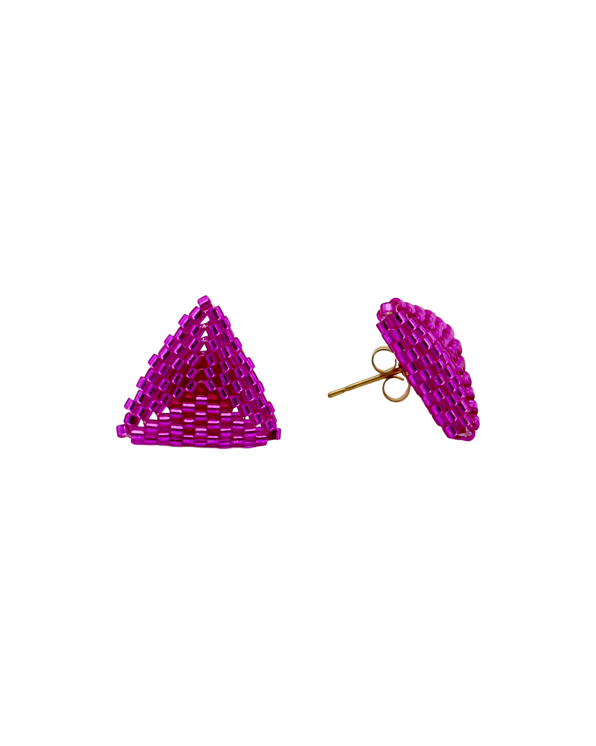 These handmade triangle stud earrings make a subtle statement in fuchsia. Crafted with delicate Miyuki Delica beads and finished with a stainless steel stud, they're lightweight, comfortable, and stylish. With their geometric shape and vibrant color, these earrings add just that little something extra to your look. They pair beautifully with the colors of the Golden Beetle and Crocodile collections—but are also a real eye-catcher on their own. The studs have a diameter of 1.7 cm and are carefully handcrafted. Perfect for mixing and matching with your other jewelry.