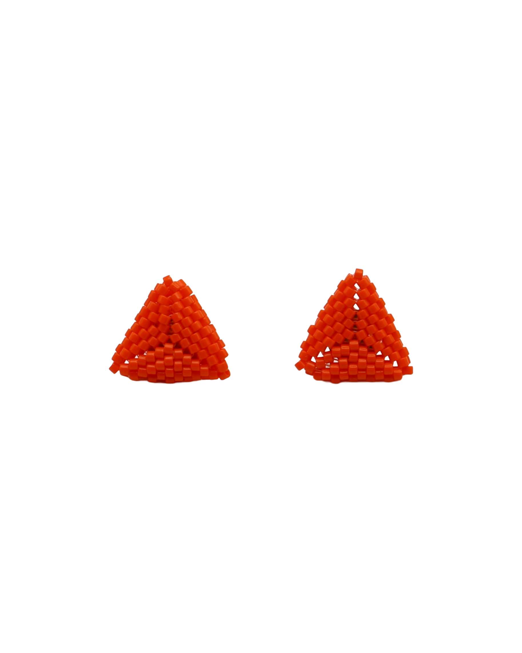 These handmade triangle stud earrings make a playful statement in orange. Crafted with delicate Miyuki Delica beads and finished with a stainless steel stud, they are lightweight, comfortable, and carefully crafted. Their sleek geometric shape and vibrant hue perfectly complement the colors of the Emerald Crocodile collection. Wear them solo or layer them with other jewelry pieces from the collection for a bold, stylish look. The studs have a diameter of 1.7 cm and are handmade – unique and made of high-quality materials.