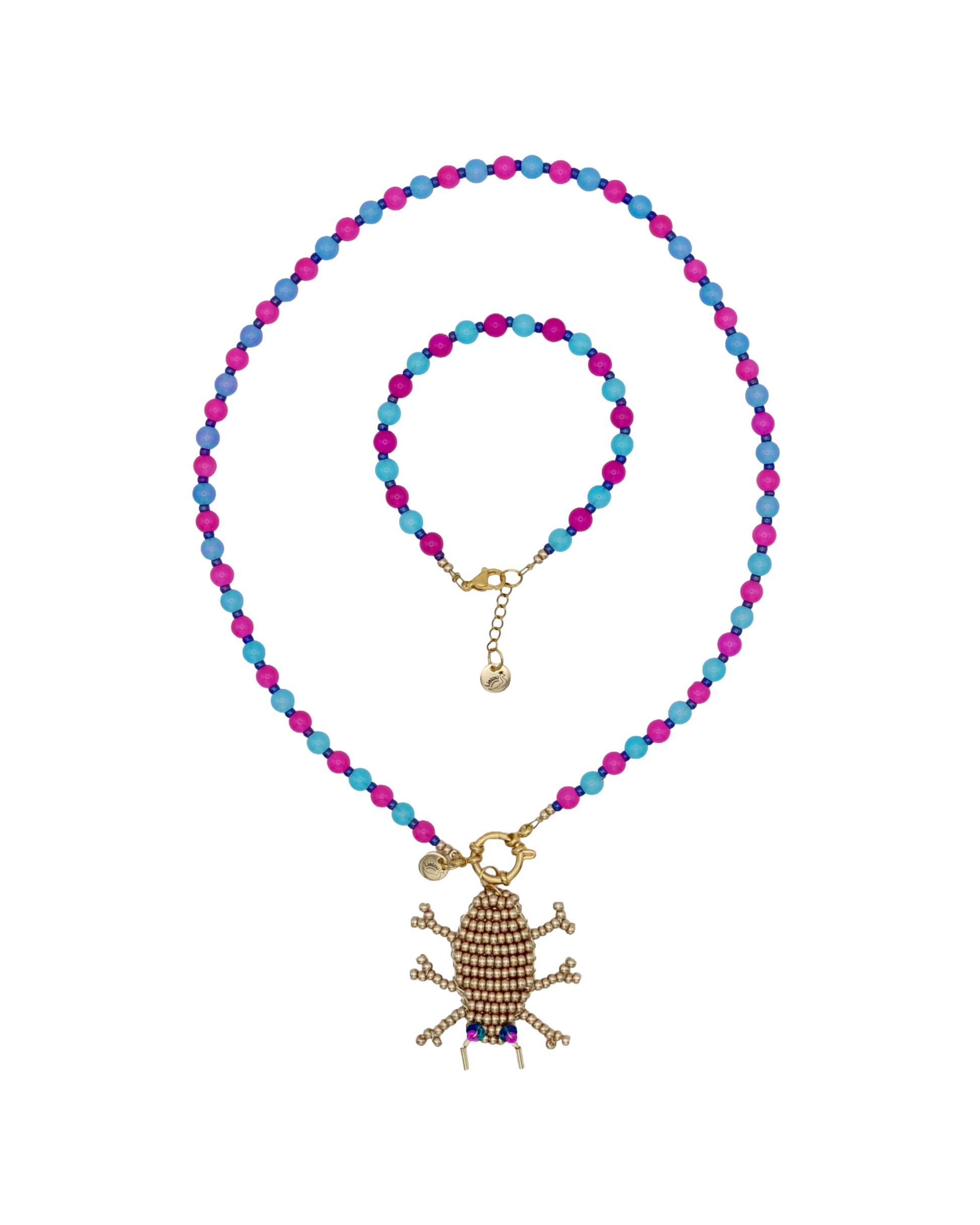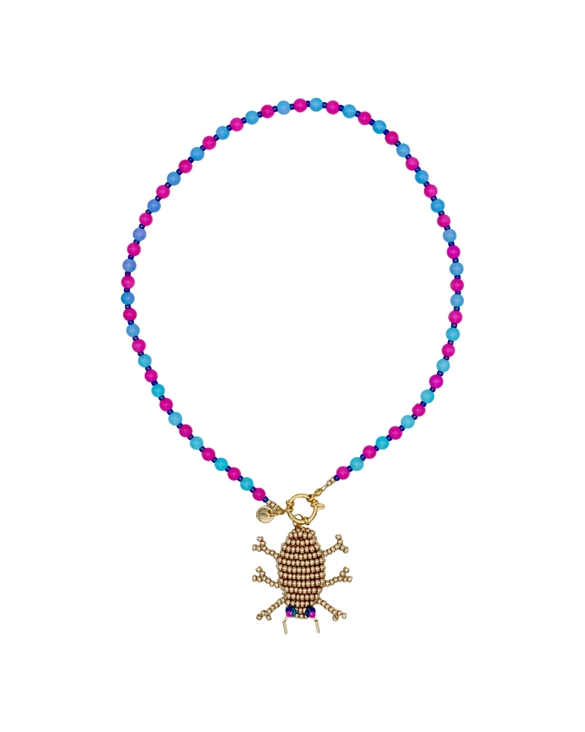 PINK/BLUE NECKLACE GOLD BEETLE AURI