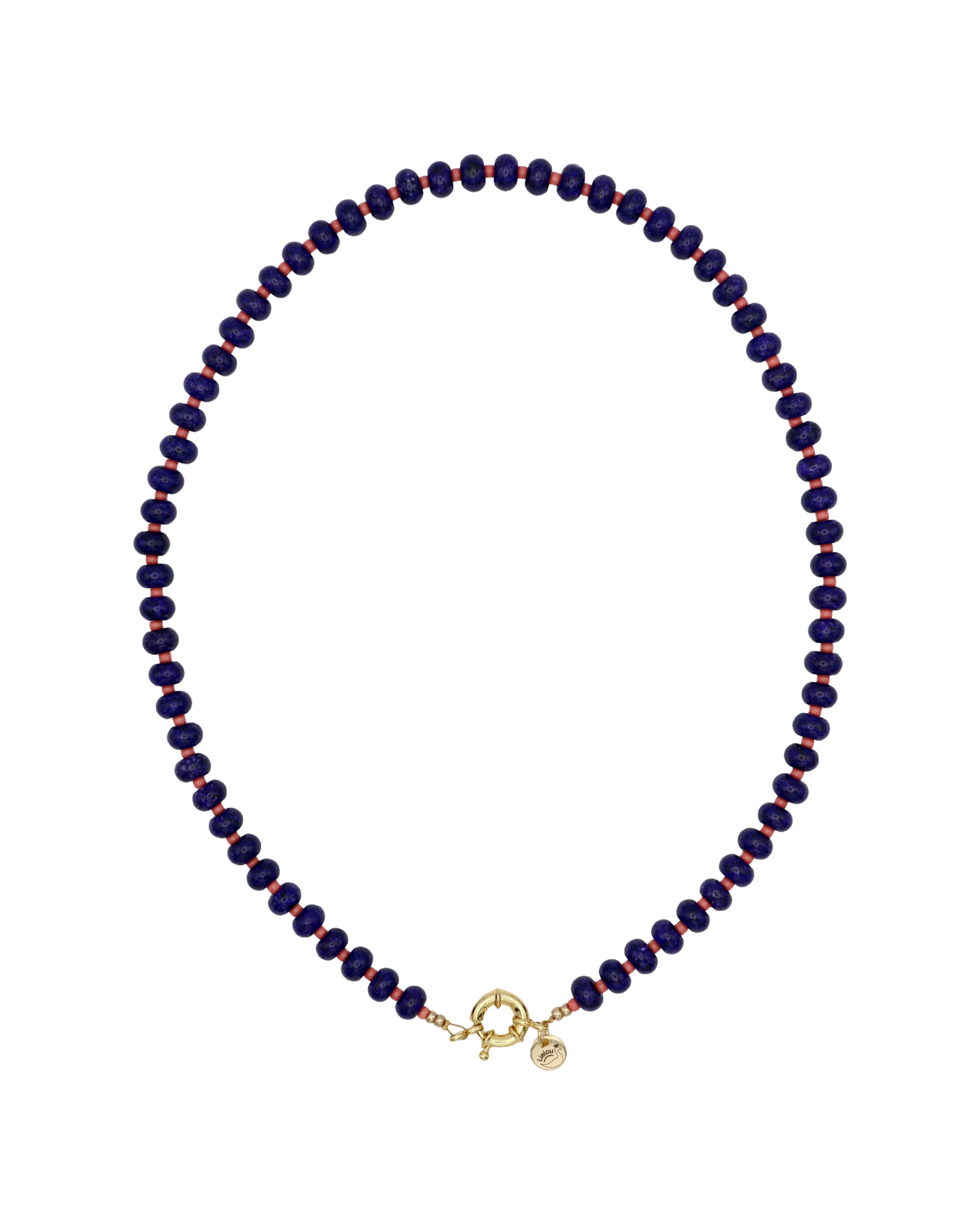 Deze handgemaakte kralenketting combineert diepe koningsblauwe natuursteen rondellen met levendige koraal Miyuki kralen. Het samenspel van koele en warme tinten geeft de ketting een opvallende, stijlvolle uitstraling die zowel kracht als elegantie uitstraalt. Met een lengte van 52 cm is dit sieraad prachtig solo te dragen of gelaagd met andere kettingen voor een speelse, verfijnde look. De 18K vergulde boeisluiting voegt een subtiel vleugje luxe toe en biedt ruimte voor een bedel — zo maak je de ketting persoonlijk en uniek.